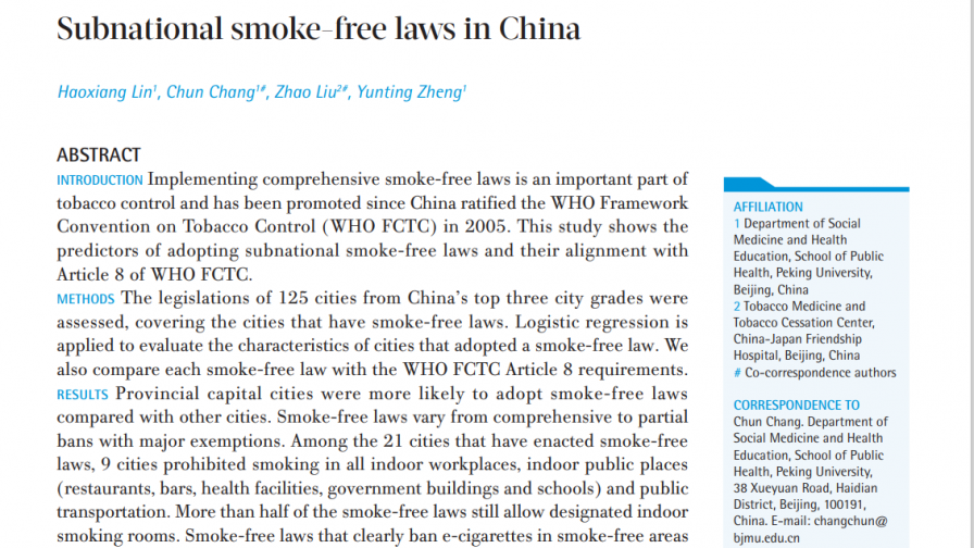This study analyses the predictors of adopting subnational smokefree laws since China ratified the WHO FCTC in 2005 and assess their alignment with article 8.