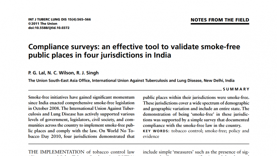 This article demonstrates how smokefree compliance can be assessed through simple and cost-effective survey tools and can be used to validate implementation and enforcement progress.