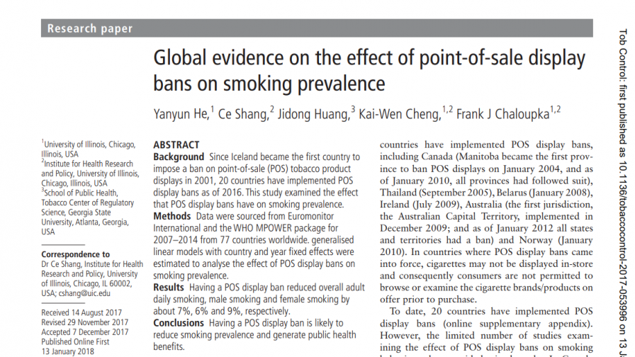 This study evaluates the effect of point-of-sale display bans globally as of 2016.