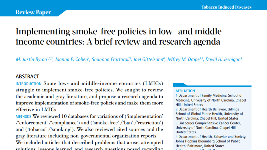 Implementing smoke-free policies in low- and middle-income countries: A brief review and research agenda