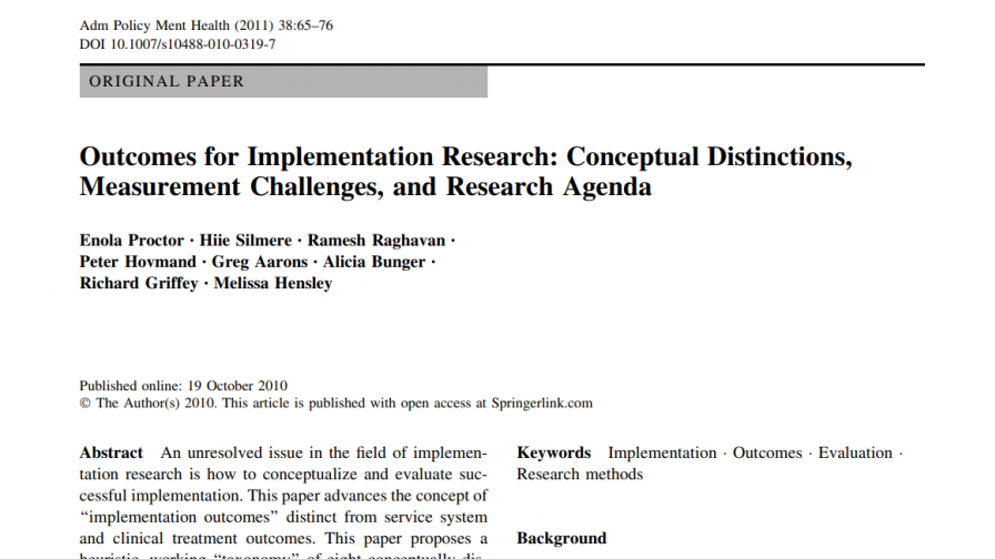 This paper proposes a general working taxonomic of eight implementation elements to measure implementation outcomes, advance implementation processes, and improve effectiveness of implementation strategies.