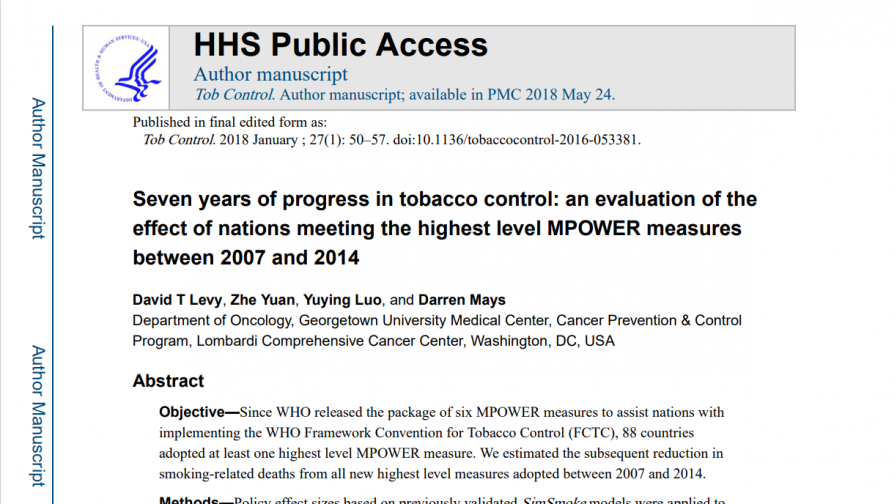 This study aims to evaluated the global progress of the six MPOWER measures and their impact across 88 countries that have adopted one or more measure from 2007 to 2014.