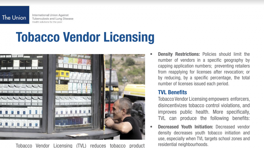 Tobacco Vendor Licensing (TVL) reduces tobacco product availability and accessibility, particularly to vulnerable youth. A key tobacco control measure, TVL can limit tobacco retailer density around schools, parks, and hospitals; this is critically important because vendor abundance normalizes tobacco use, increases exposure to tobacco advertisements, and thwarts quit efforts. TVL can also restrict the types of products sold alongside tobacco and ensures inspectors know where products are sold, allowing for more effective enforcement of all point-of-sale tobacco laws.